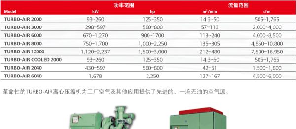 產(chǎn)品名稱:TURBO-AIR 系列離心式空氣壓縮機(jī)功率:93-2237kw排氣量:14.3-480m3/min品牌:英格索蘭